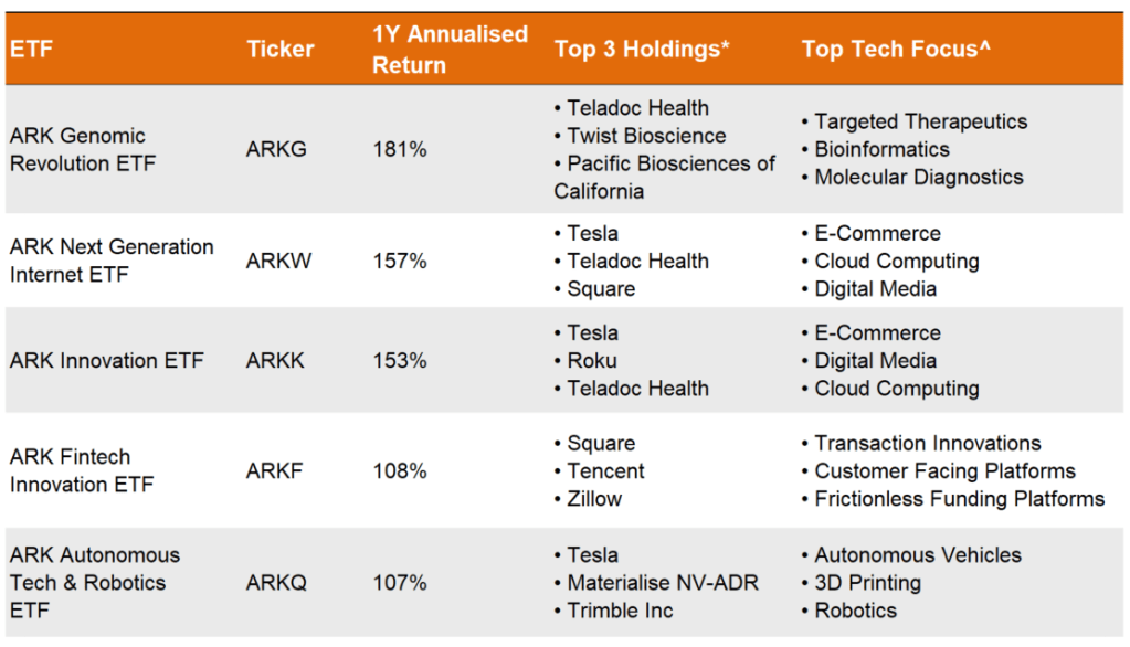 Only six years since it was founded, ARK is now a top-10 ETF issuer in the US managing about US$34.5 billion as of end 2020. This is a 10-fold jump from 2019, when their inflows only reached US$3.1 billion.