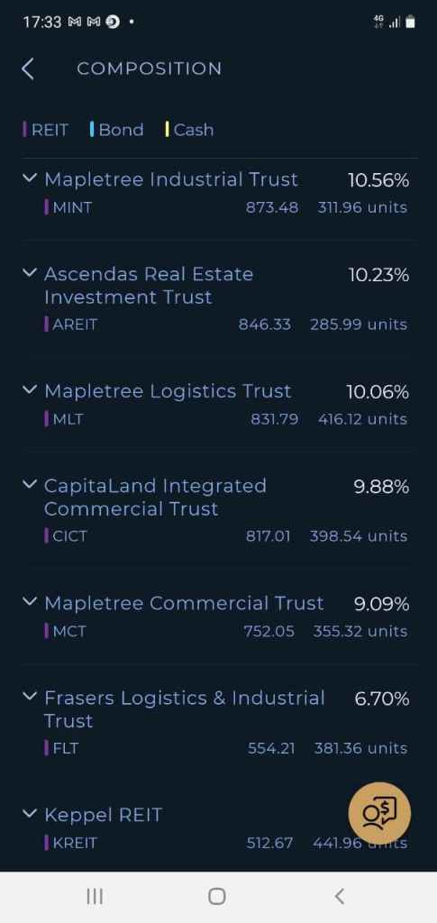 For us, we love how effortless it is. We’ve earned a 16.4% return doing nothing at all. Even our dividends are reinvested automatically for us. We hardly need to check our REIT+ portfolio, and even when markets turn volatile, we’re never too worried since we know we’re invested in a diversified basket of quality REITs like your Mapletrees, CapitaLand, Ascendas etc.