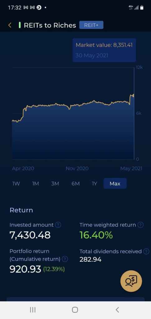 So when the recent correction happened, we were ready and invested another $1,000 in mid-May. Since then, there have been some further volatility but with the REITs market slowly recovering, we feel we made the right call.
