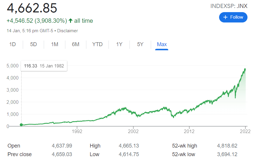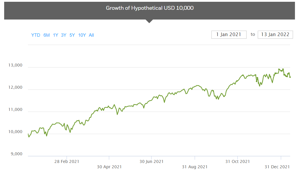 For one, you aren’t sitting on a pile of cash and waiting to enter at the lowest point. It’s impossible to time the market and whilst you’re waiting to make your move, you’re missing out on all the returns in the meantime. (A $10,000 investment on 1 January 2021 would have generated a 25.53% return as of 13 January 2022.)